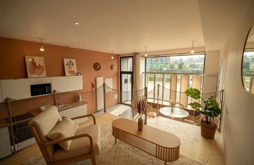 Loft/jacuzzi L'instant is located in Saint-Valery-en-Caux. Loft/jacuzzi L'instant provides accommodation, featuring Wellness Facilities, Fireplace/Heating, Hot Tub, among other amenities. This Apartment features Wellness Facilities, Fireplace/Heating, Hot Tub, to make your stay a comfortable one.