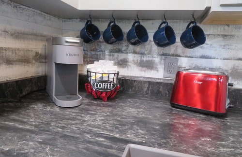 Enjoy the lighted path to the fire pit where you can star gaze, enjoy a roasted marshmallow, or a beverage of choice. Fire wood will be provide, due to no fire wood cutting or gathering on the property!