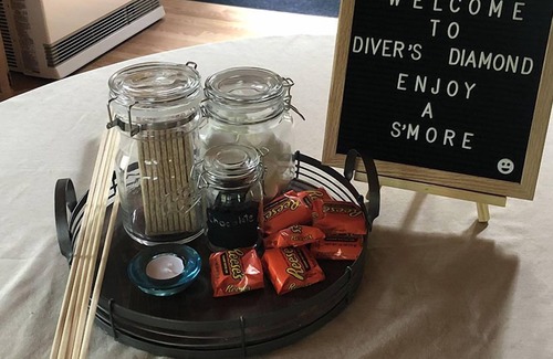 Outside we have a wonderful fire pit you can roast s’mores over or cook dinner on. Enjoy any of our lawn games of horseshoe and corn hole or just sit on the deck and relax with a book.