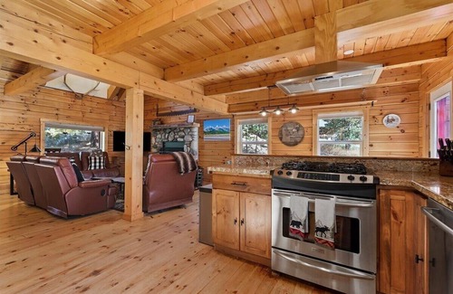 Kitchen is fully stocked with supplies and basic ingredients, and the home is thoughtfully decorated throughout to add to the peaceful mountain ambiance.