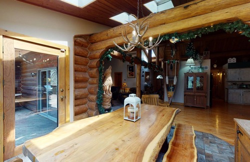 Log Cabin in a higher end subdivision located on one acre 4 bedrooms can accommodate 10 guests. The house is full amenities: Steam Room, Hot Tub, Pool Table, Shuffleboard and hgtv type backyard including fire pit, 3 gas grills, outdoor fireplace, two gas fire pits, trampoline and optional zip line experience!