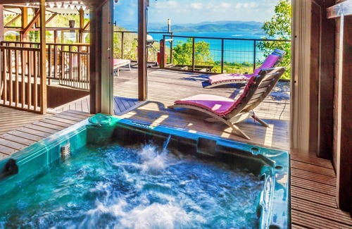 Fall in love with this charming abode. From here there is a stunning view of the sea and the surrounding areas. Come and enjoy this gem of a villa, wooden and nestled in a verdant, setting all in bloom at the edge of the Île de la Caravelle Peninsula Nature Reserve. The architecture opens onto panoramic views of the sea around the indoor Jacuzzi surrounded by many terraces, decks, and a sun terrace with a barbecue. Tastefully furnished, it is a perfect rental to share between 3 to 4 couples or with the family. A haven of peace nestled in lush greenery! This change of scenery brings with it a sense of freedom. Holiday as you wish with the various relaxation, fitness, or sports offers. ´