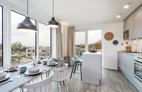 Welcome to your flat, which offers a cosy, homely ambience with Scandinavian design furnishings for up to 6 people. You can get some fresh air on the balcony. In the open-plan kitchen, you can cook any recipe for friends or family.