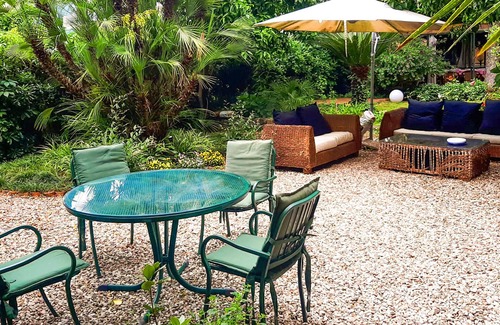 You will also enjoy spending time on the atmospherically lit veranda. Here, comfortable seating invites you to chat over a glass of wine. Have breakfast in the cosy garden, recharge your batteries among the Mediterranean plants and treat yourself to some relaxing moments in the whirlpool.