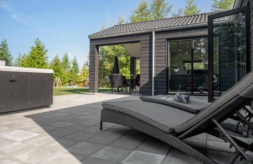 From the living room you can access the terrace, where you can drink your morning coffee on the covered part, while the children play on the water and private playground. For relaxation there is a whirlpool to massage your tired muscles and a barrel sauna and deck chairs.