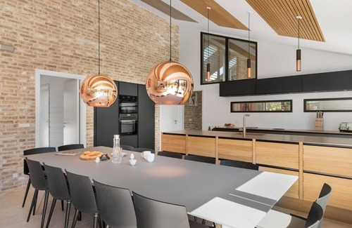 This holiday home is for those who appreciate that little bit extra, stylish details and exceptional luxury products in their holiday home. Architect's dreams have come true here - welcome to your uniquely stylish holiday home. Everywhere you look, you can feel that the furnishings have been designed with that certain something in mind. Enjoy the open-plan living concept with cosy seating and your own indoor pool. Have fun with a game of table tennis or entertain yourself in the open loft with Playstation 4.
