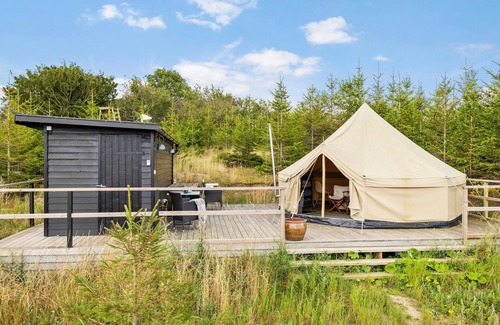 If you are planning a holiday close to the sea and want to experience nature, this idyllically situated glamping tent is the right choice. It welcomes you at the edge of the forest with breathtaking views of the fields, sea and sunset, and its cosy interior provides a beautiful setting for your time out. After an active day, cosy up by the wood-burning stove and enjoy being close to nature.