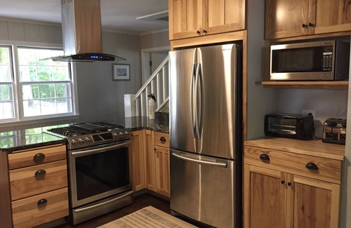 "Maple House" has plenty of comfortable upscale space for gatherings and also for quiet time away from the group. We offer 1 large bedroom with a queen bed on the main level which has it's own bathroom, a 2nd main floor bedroom with a queen + twin, and 4 upstairs bedrooms: three with queen beds and one with 2 twin beds. Other sleeping options include a large sectional couch, an outdoor style couch that would sleep one person (except winter) on the 3-season porch, and a queen double height air mattress with built in pump. In addition to the master bath, there is a small bathroom with a shower on main level and a bathroom with tub and shower upstairs, plus a nice laundry room upstairs for your use. You will enjoy an updated well-equipped kitchen, large dining room table, huge comfy "great room" with large curved screen TV with cable and high speed internet, a 3-season porch, and a patio with table & chairs, gas grill, and fire pit. We provide wood and propane. We provide spices & cooking oil, coffee beans & grinder, tea, a few pantry items like sugar and flour, and a gift of local pure maple syrup made by your hosts!