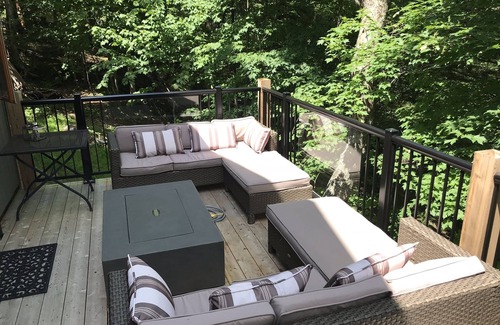 Spacious all-season chalet with wrap around decks and private hot tub.