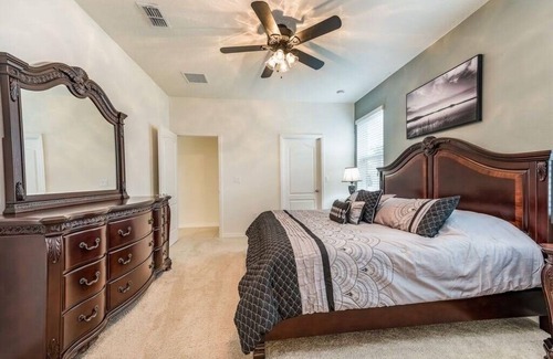 Escape to this stunning 6-bedroom villa in Davenport, perfect for families and groups. With 4 king beds, 1 twin bed, 1 full bed, and 1 bunk bed, this pleasant retreat offers plenty of space for all guests. Enjoy the convenience of a private pool, a fully equipped kitchen, AC, WIFI and more during your stay. Conveniently located only a drive away from family favorite attractions like Disney World and Universal Studios, there’s something for everyone to do. Our place is equipped for both long or short stays to make your holiday one to remember.