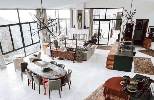 A refurbished Artist studio and exclusive house with impressive views of the volcanoes of Agua, Fuego and Acatenango. Surrounded by mountains and nature, carefully decorated with a private collection of art work and detailed architecture. The Space is fully equipped, with a private Gym, sauna, confortable living room and elaborate kitchen. Dining table for 6, fireplaces and an outdoor wood fire place perfect for Pizza night. Located only 15 min drive from Central Park of Antigua Guatemala.