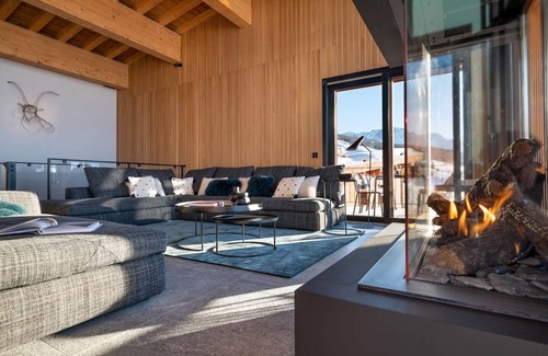 Chalet of 280 sqm for 12 persons overlooking the centre of Arc 1800, ski ski out and close to the golf course.