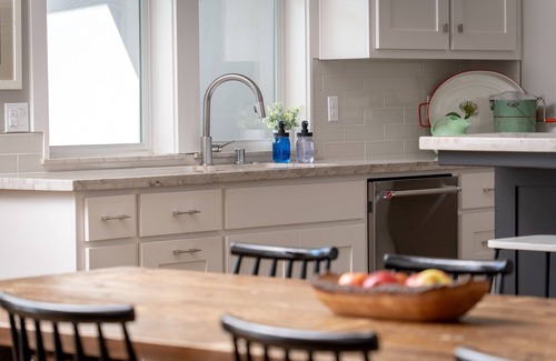 Our newly-built farmhouse with wood-beamed, vaulted ceilings features everything you need for a perfect getaway! Whip up your meals in a fully-outfitted, gourmet kitchen with a double oven, built-in microwave and Keurig. Both indoor and outdoor dining areas have extra long tables with seating and settings (i.e dishes, silverware, etc.) for 10+ people. The open concept great room with smart TV connects directly to the spacious backyard with a hot tub, horseshoe pit, corn-hole and gas BBQ grill. Inside you’ll find more fun in the garage where we have another smart TV, ping-pong, foosball and floor-to-ceiling shelving stacked with board games. Two en-suites and one shared bath, all with shower and tub, plus a half-bath in the main living area make sharing space a breeze. The house has 2 nest systems to operate the AC and heat, keeping you comfortable any time of year.