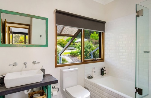 An extensive renovation was completed in June 2015 and Kookaburra Hill is more spacious and comfortable than ever before. The house features a brand new kitchen, 3 queen bedrooms with luxury mattress toppers and linen, a full bathroom featuring a deep cast iron bath and an additional toilet, a huge open plan living and dining area with cathedral ceilings, loft and wood burning fireplace, and additional living area with a 60 TV. It comfortably sleeps 6 adults and offers additional accommodation for 2 more, if required. The house has fully ducted air conditioning and heating in addition to the fireplace and ceiling fans.