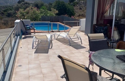 Does the Milatos villa have a swimming pool?