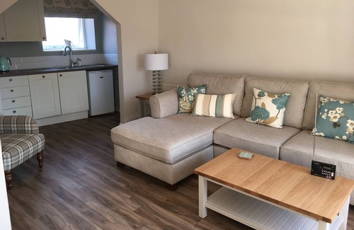Rooftops is a one bedroom apartment, recently modernised to a very high standard located in the centre of town. Downstairs is a large bedroom with a 5’ bed, a shower room, then up an elegant staircase to the galley kitchen, with a large seating area and a table that seats 4. Finally there’s the wonderful view out over rooftops to the iconic St James church, beautiful by day but stunning when lit at night. There is an allocated parking space with the property.