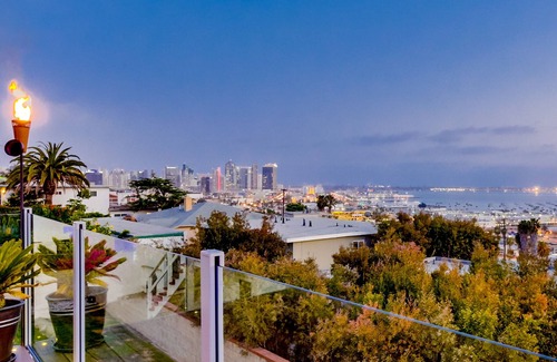 This newly remodeled home in the upscale Mission Hills neighborhood has stunning 270 degree views of the city and San Diego Bay and Coronado Island from its floor-to-ceiling windows in the kitchen, dining room and master suite. It was recently featured on the Travel Channel's story on leading vacation rentals in San Diego!