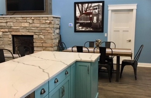 The house is fully furnished with a modern farmhouse decor throughout. The kitchen is fully equipped with stainless steel appliances, microwave, toaster, coffee maker that uses ground coffee, utensils, etc., and has a solid wood dining table for 8, kitchen table that seats 6 and also a kitchen island that seats 4. There is a sofa, loveseat and a fireplace in the living room. There is big smart TV over the fireplace. The personal touches in decor along with the themed bedrooms give you the feeling of being in the comfort of your own home.