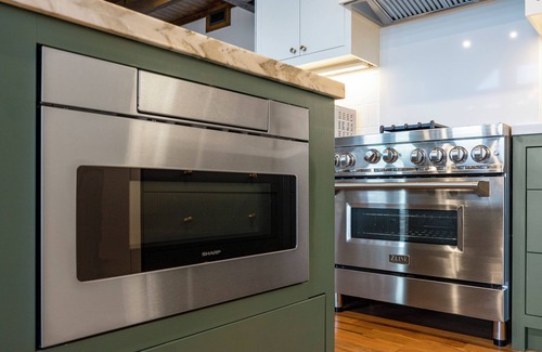 - Kitchen has a warming drawer, and there is a second fridge/freezer in the garage for additional food storage.