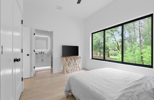 'The Golden Standard' - Golden Award Winning Home 2023 (Tallahassee Parade Of Homes). Kick back and relax in this calm, stylish space on 10 acres. Our picturesque 3-bedroom masterpiece is just waiting to be a part of your next adventure. You'll NEVER lose power here - fully self-sufficient house with solar panels and a TESLA powered battery wall. Come experience our quintessential modern getaway where you can fish in the pond, go for a walk among the trees, and experience true comfort!