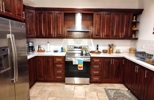 This beautiful brand new 3 BR house is just what you need if traveling with family or friends. Everything is set for a perfect getaway in the comfort of a highly stylish home which offers plenty of outside area, including a heated pool, hot tub, yoga area, outside chimney, BBQ area and indoor and outdoor dining room area. Very spacious guest rooms, fully equipped kitchen, laundry room, outside parking space in a gated community with all the amenities you may need to make your stay a memorable one.