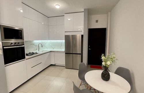 Relax in style and comfort in this brand new high rise loft in the hip and fun Barrio Antiguo neighborhood of Monterrey. This retreat offers state-of-the-art appliances, a king size bed, and sweeping views of the city and surrounding mountains. You will have a dedicated/gated parking space, elevators and an entire roof top terrace with outdoor grill and seating at your disposal. The neighborhood is full of trendy restaurants, bars and artisan shops. Luxury awaits so book now.