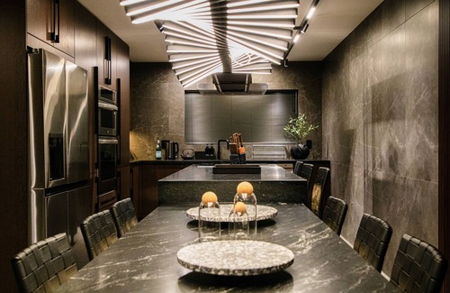 Our fully equipped modern kitchen is a chef's dream with built-in appliances and everything you need including air fryer, rice cooker, blenders and processors, coffee maker with frother, all necessary utensils and silverware.