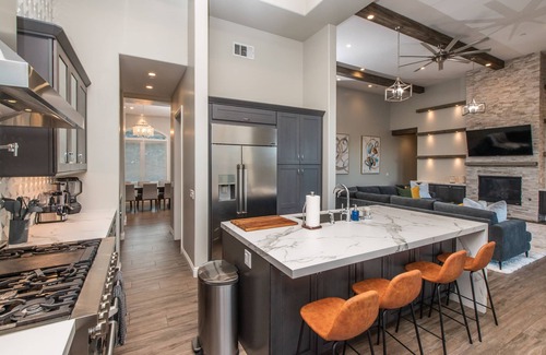 Live, work, and dream at our extraordinary 5BR/4BA estate! The luxurious interior features a grand living space, state of the art game room in the garage, updated kitchen, and spacious bedrooms. Outside you'll find a beautiful infinity pool with hot tub. Also featured, is our incredible entertainment area that includes bocce ball & 3 hole putting course! Indulge in the best home cooked meals, play games together, and rest easy after a sun-drenched afternoon in the pool!