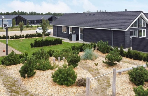 This well-equipped holiday cottage at Houstrup Strand has an impressive pool area with an 18 m² large pool with slide, counter-current system and a 4-6 people whirlpool as well as a sauna for 4 persons. On the other side of the centrally located dining/living room you will find the activity room where you can have a drink or play darts, billiards, table tennis, table football or just observe the others playing. There is also a sofa area with TV with PlayStation4 for many hours of entertainment. The living room is tastefully furnished with comfortable furniture and a wood-burning stove as well as a large flatscreen TV with various channels. The house is very spacious and well-dimensioned and built around 2 separate sleeping areas with a bathroom. There is also a large mezzanine with 4 beds and plenty of room. The obvious room for the family to meet is the large and architecturally interesting combined living room and kitchen. The kitchen is fully equipped with e.g. 2 ovens and 2 dish washers in order for more people to help preparing dinner. There is a large, partially covered terrace where you can enjoy the Danish summer. On the large, surrounding plot there are swings and a sandpit as well as a trampoline (usage at own risk/insurance). No letting to youth groups.