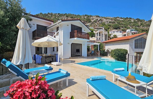 Best-rates for the Kalkan villa starts from $202 per night with includes Parking, TV, Private Pool, Ocean View, Oceanfront, Hot Tub, Internet, Air Conditioner, View, Balcony/Terrace, Fireplace/Heating, Barbecue/Outdoor Cooking, Laundry, Pool, Security/Safety, Wellness Facilities, Child Friendly, Bedding/Linens, Entertainment, Kitchen with all other facilities. Casai.ca matches every traveler with their perfect accommodation, whether you are traveling with a group, friends, family, or pets.