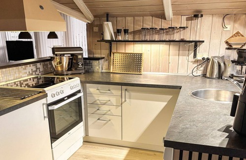 Layout: Kitchen(cooker(electric), coffee machine, microwave, dishwasher, fridge, freezer(60-99L)), Living/bed room(TV(german television channels, danish TV channels (DR1 and TV2)), high chair, chromecast), bedroom(double bed, children's bed), bedroom(double bed), bedroom(double bed), bedroom(2x bunk bed), bathroom(washbasin, shower, toilet, washing machine), bathroom(washbasin, toilet), Bubble bath(indoor, 2 persons), sauna(indoor, 4 persons), heating(electric), terrace, garden, garden furniture, air to air heatpump