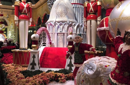 A mile away from the Las Vegas Strip, Westgate Las Vegas Resort Casino has a luxurious king bed, a 60-inch LED TV, and a luxurious bathroom. It also has a wet bar with a microwave, mini refrigerator, and is specifically designated as non-smoking. The room has a well-organized desk and chairs, and we provide extra amenities such as a hair dryer, iron, and WiFi. The room is decorated in black and gold, and our host is very accommodating.