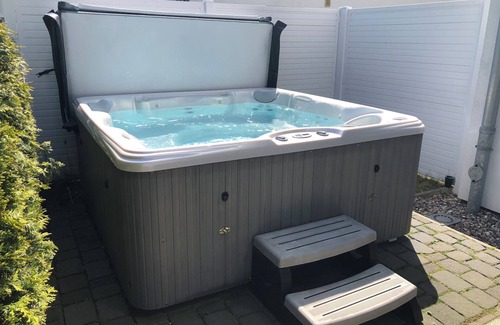 The in-house outdoor hot tub in the garden area is only available to the guests of this house for sole use. This will be checked regularly by service staff during your stay. Enjoy year-round 38 ° C water temperature, bubbling massage pleasure from hydro massage jet nozzles & changing colors through the pool-integrated, dimmable multi-LED lights.
