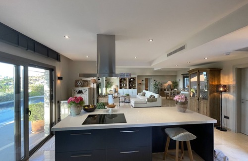 All bedrooms have double beds. All bedrooms and living rooms are fully air conditioned and beautifully furnished with wardrobes. The modern kitchen is fully fitted and includes all the modern amenities you would expect from a luxurious property. The lounge is spacious with comfy seating, dining area and satellite TV. Doors in the lounge open out to the quite large terrace where you will find patio furniture for alfresco dining. Holiday Villa has private pool, comfy sun loungers for topping up your suntan and BBQ.. The beaches are only a few minutes away by car from this luxury holiday villa.