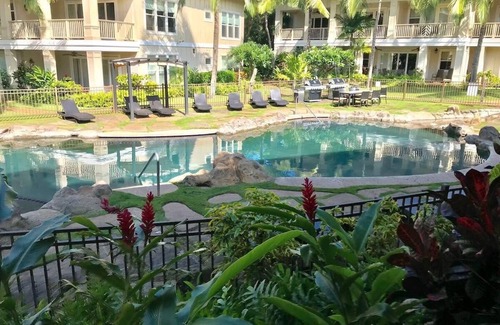 - Access to a resort-style pool, hot tub with cascading waterfall, and BBQ grills for Hawaiian-style cookouts
