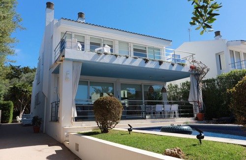 The villa, with stunning sea views, is located in a quiet area, and just a short walk from everything you can need: Less than 5 min walk to the beaches, restaurants, supermarket, pharmacy, little commercial centre,, scuba diving, gym, Padel tennis courts, beach bars, Forest walks, etc. Air-conditioning throughout the whole house.