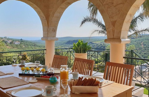 Enjoy magical evenings on the covered, wraparound terrace – with a glass of wine in hand and sweeping views of the twinkling lights of nearby villages and the endless sea. Whether it's sunset or starlight, this is where unforgettable moments happen.