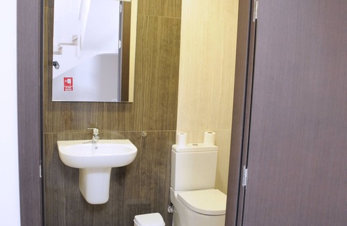 There are 3 bathrooms with shower and one toilet next to the laundry room.