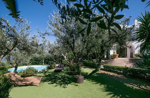 The villa is surrounded by a large Mediterranean-style garden, enhanced by a beautiful swimming pool with sun loungers and a variety of flowers, trees and aromatic plants.