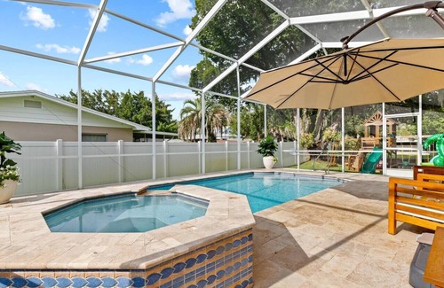 The Pool House on Jefferson features a private saltwater pool with a hot tub. Conveniently located close to the Homosassa Springs, shopping and restaurants.
