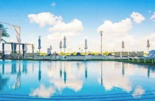 A stunning pool deck with panoramic views of Miami, the skyline and the most breathtaking sunsets