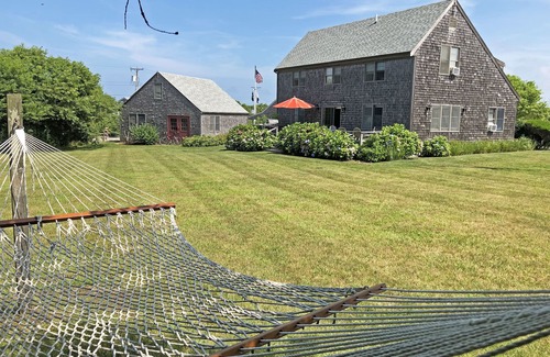 Two story cape cod style home in the heart of Old Madaket. Large yard for croquet or cocktails, ten minute walk from Millie’s and Madaket Beach. Town dock at the corner of the yard.