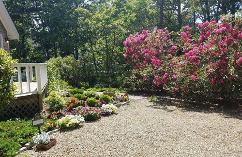 Feel tranquility as you unwind in our centrally located Katama beach house surrounded by woods. Entering the sun-drenched, spacious, bright and airy kitchen/dining room with cathedral ceilings, you will feel like your vacation has already begun. Decks, flagstone picnic area, gardens and trees abound. Relax with your book and beverage or hop on your bike and pedal to South Beach, a 10 minute ride away.
