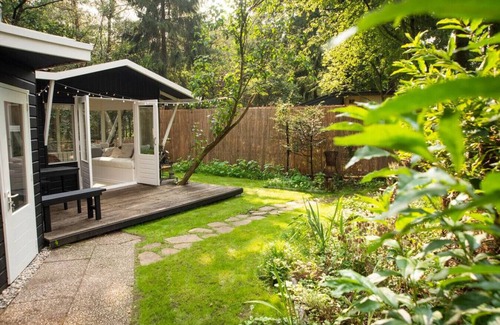 Our four-person cottage of 45m2 is located on the edge of the forest and the Veluwe. With a bit of luck, you might see squirrels, deer, or even wild boars passing by. The cottage is situated in a small-scale park without amenities. Surrounding the cottage is a delightful forest garden with complete privacy.