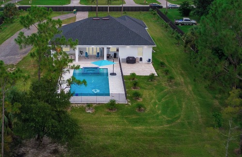 With this tropical ranch style home you will have it all while enjoying beautiful sunsets and lushes. . Enjoy all the luxury of its accommodations of this Naples Estate Home. Everything is new. New beds and mattresses. 4 bedrooms, high ceilings, modern kitchen, over an acre of patio, exterior backyard with dining tables and chairs, outdoor summer kitchen, an oversized heated pool with tub. 2 car garages. 1 master bedroom with a master bathroom. 1 bathroom with its door leading to outside patio making it easy to access from the pool. Gated home with an electric combination gate. Free Wifi. Guests can access the entire Home while they are staying. Electric combination locks. They will be close to Naples beaches and downtown. Just minutes from exclusive marco Island beaches as well. House Rules No PETS No SMOKING inside of the property. No Parties allowed. No more than the amount of allowed guests.Please maintain the property clean and take care of it. Before leaving leave all the dirty kitchen items in a running cycle in the dishwasher and leave dirty towels in a running cycle in the washer.