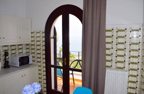 Fully equipped kitchen (Οven and hobs, fridge,freezer,coffeemaker, toaster, juicer, kettle,multi ,microwave,cutlery and utensils )to assure your comfort and provides all you need to cook.Ιt also includes a dining table for six and leads to a balcony with incredible sea view.