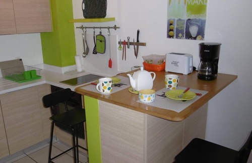 In the heart of the pleasant town of Saint Pierre, BETWEEN SKY AND SEA, welcomes you in a T1 classified Furnished Tourist accommodation 3 *, with parking, air conditioned, decorated with care, functional and fully equipped.