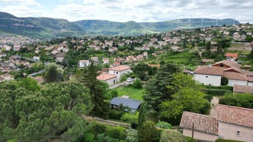 Maison bois vue Causse Larzac et viaduc is located in Millau.