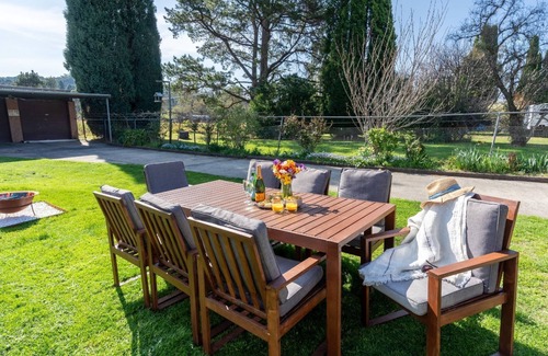 Step into the warm embrace of "Maison de Celine," where comfort and style seamlessly intertwine. Our charming and cosy interior provides a comfortable Bowral getaway for 9 guests. Inside, sink into sumptuous sofas in the living area, gather around the TV for movie nights, or unwind in the sunroom. Rest easy, knowing your beloved pets can play freely in the fully fenced yard, always ready to accompany you on this unforgettable journey.