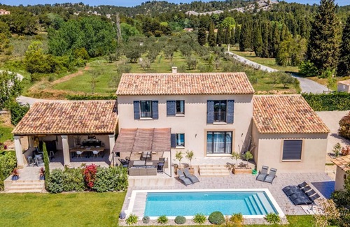 The villa is in a partly residential area with other houses dotted around and backed by olive trees. Walk down the country road (no pavement for most of the way) passing other attractive houses, plane trees and towering pines, and soon you will reach the village. There are two high-end restaurants on the edge of the village (book ahead) whilst the small pretty centre is home to a boulangerie, café-restaurant and Spar grocery store.